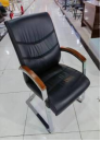 弓形椅,黑色西皮,實(shí)木扶手。