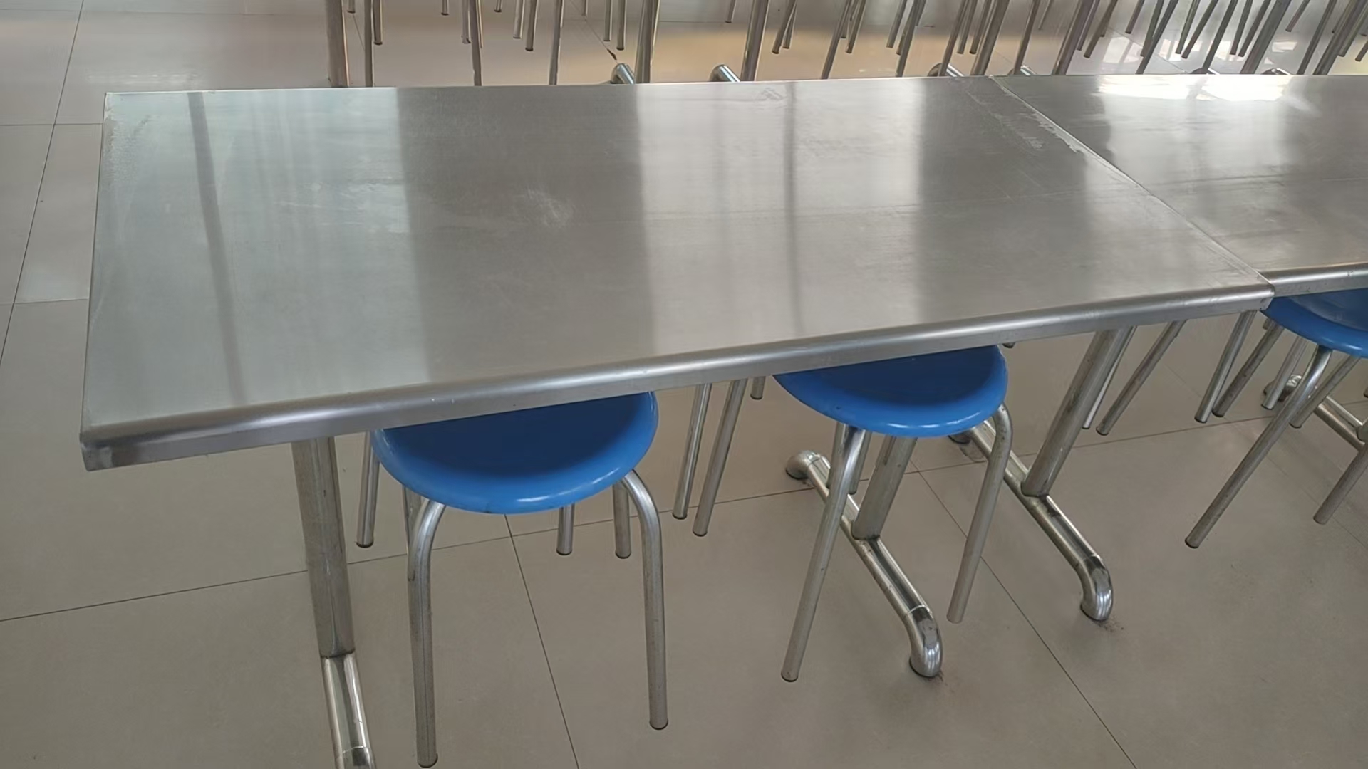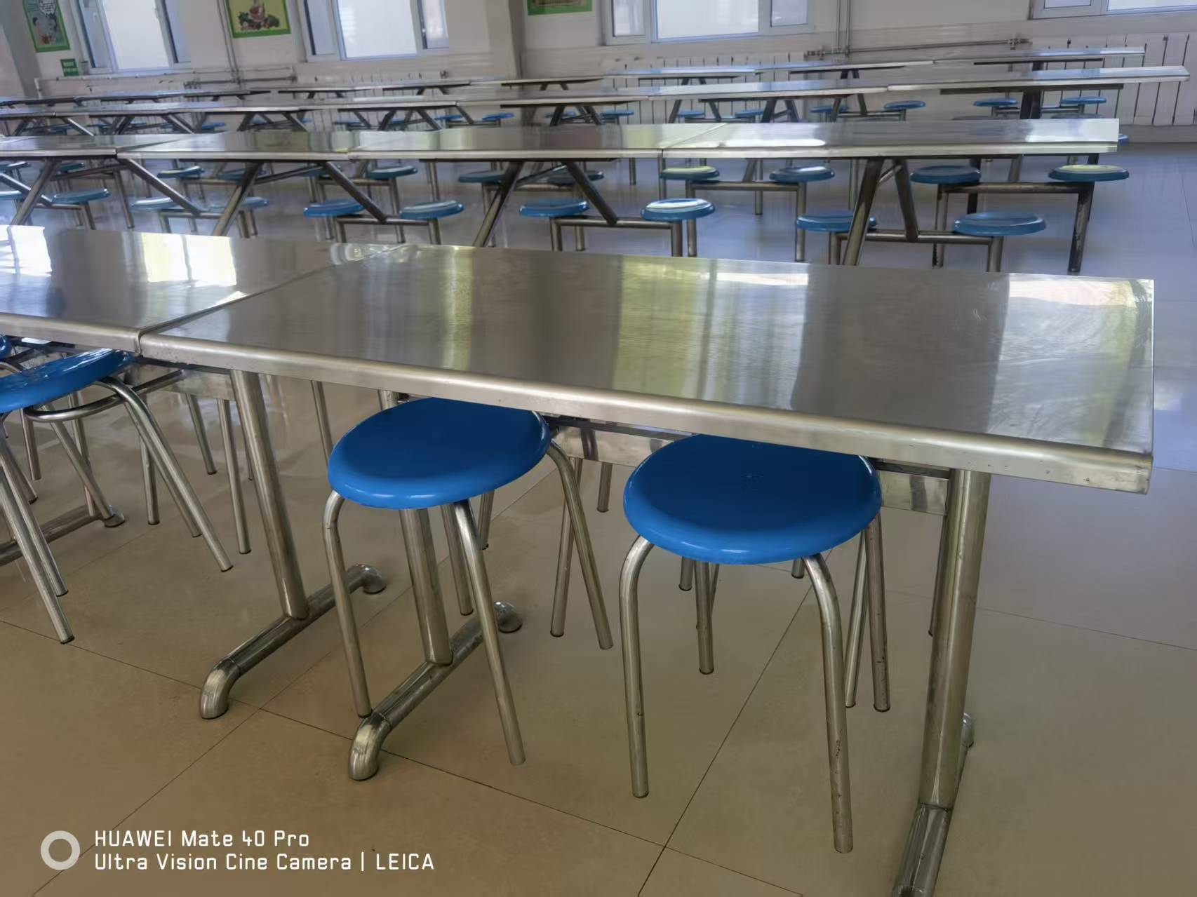 4人掛凳桌:桌面:60*120不銹鋼,外包0.5MM厚不銹鋼板,內(nèi)襯18MM厚防火板。桌架:主管直徑48圓不銹鋼管1.2MM厚 氬弧焊接 拋光。凳面:直徑30圓PP塑料凳架:直徑22圓不銹鋼管1.2MM厚